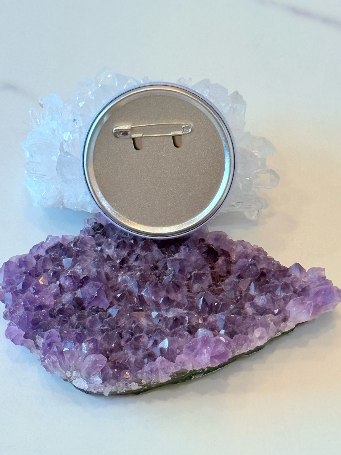 天使と悪魔のモチーフを組み合わせた「Clotho」のロゴデザイン缶バッジ。