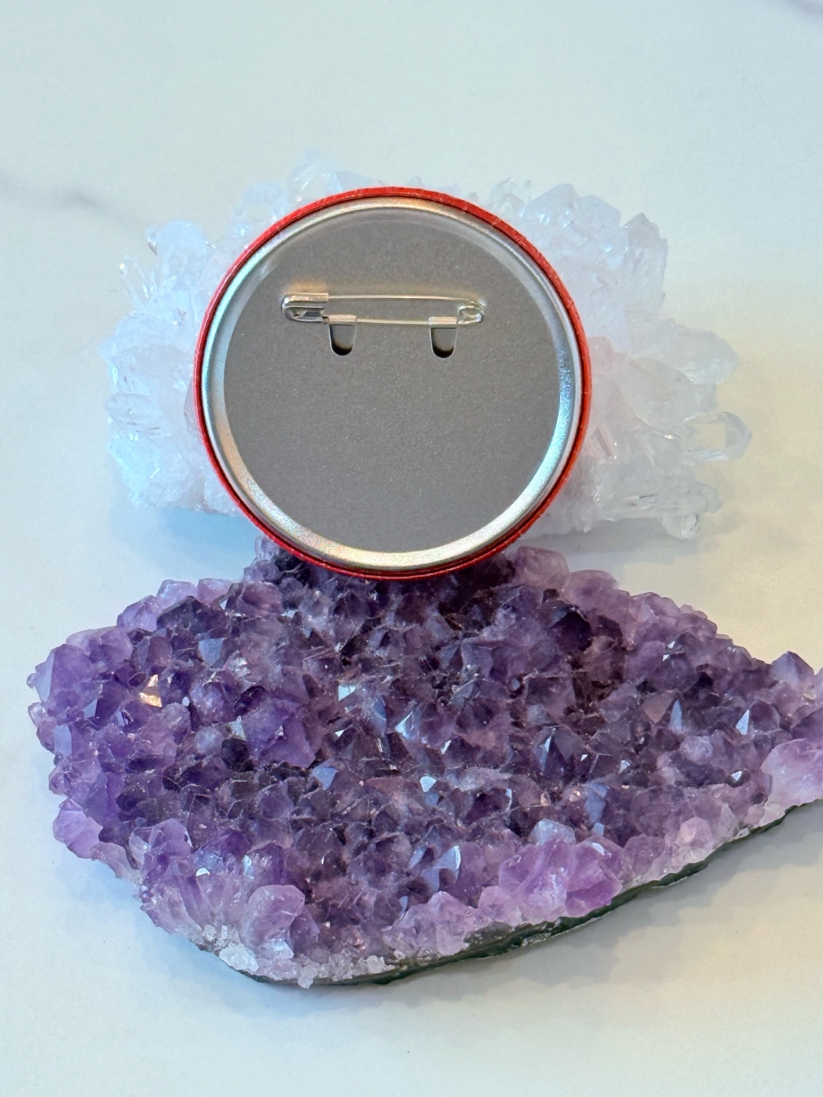 真っ赤な背景に、力強い筆文字で「一騎当千」と描かれた缶バッジです。